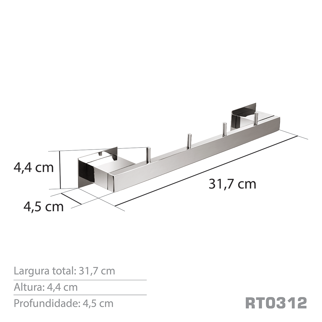 Informações gerais do produto: Cabideiro com quatro ganchos, utilizados para pendurar toalhas, roupas e acessórios em geral.