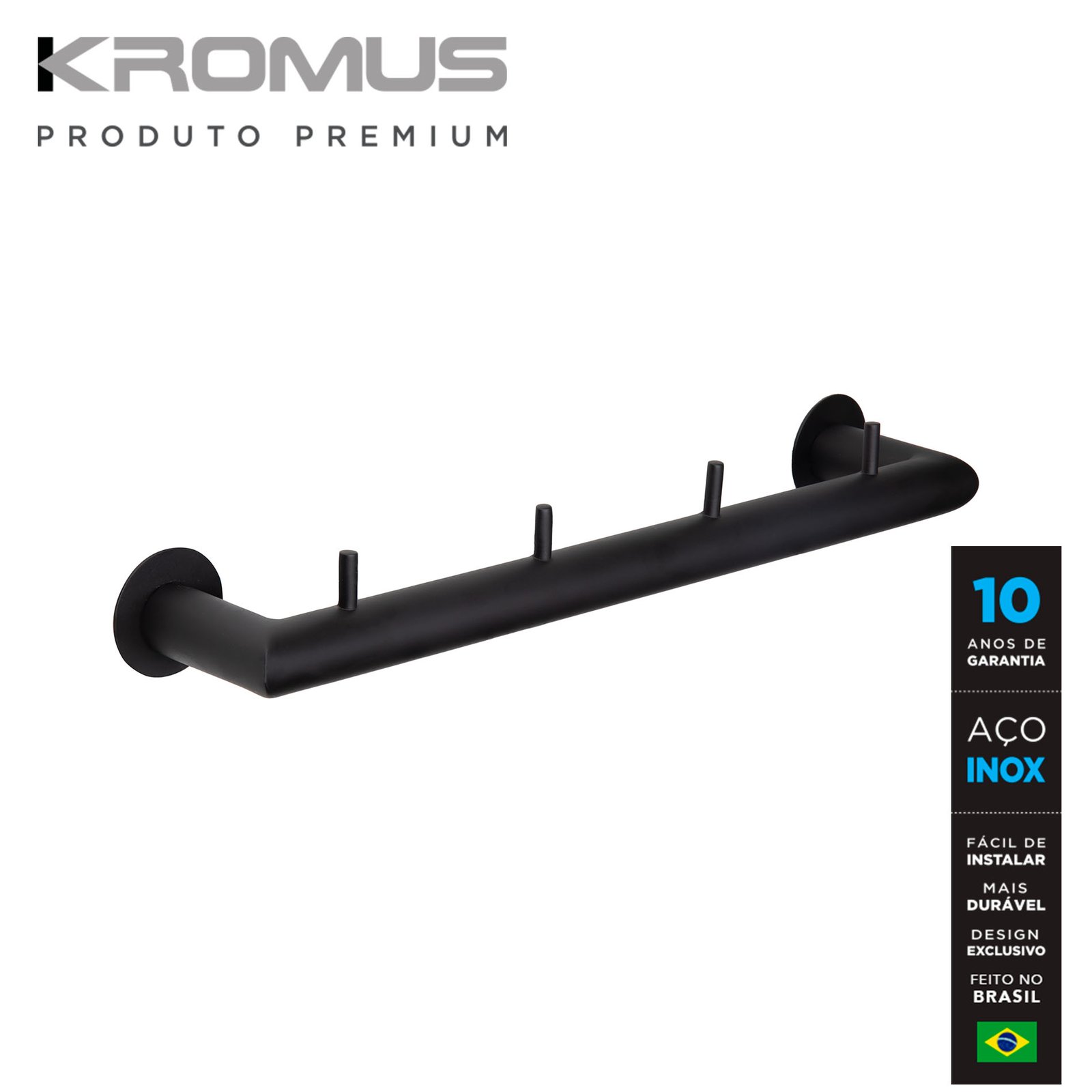 Descrição do produto: Cabideiro C4 Inox Preto Fosco – Kromus ME0214B