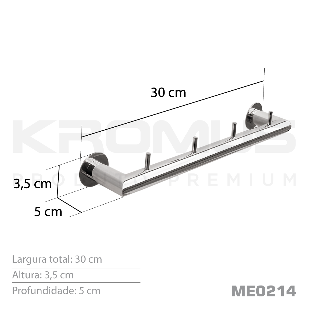 Informações gerais do produto: Cabideiro com quatro ganchos, utilizados para pendurar toalhas, roupas e acessórios em geral.