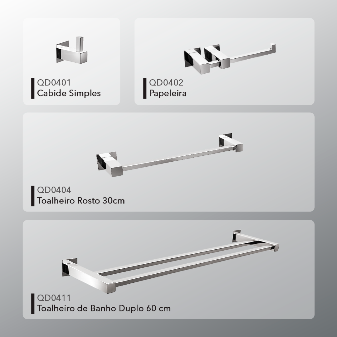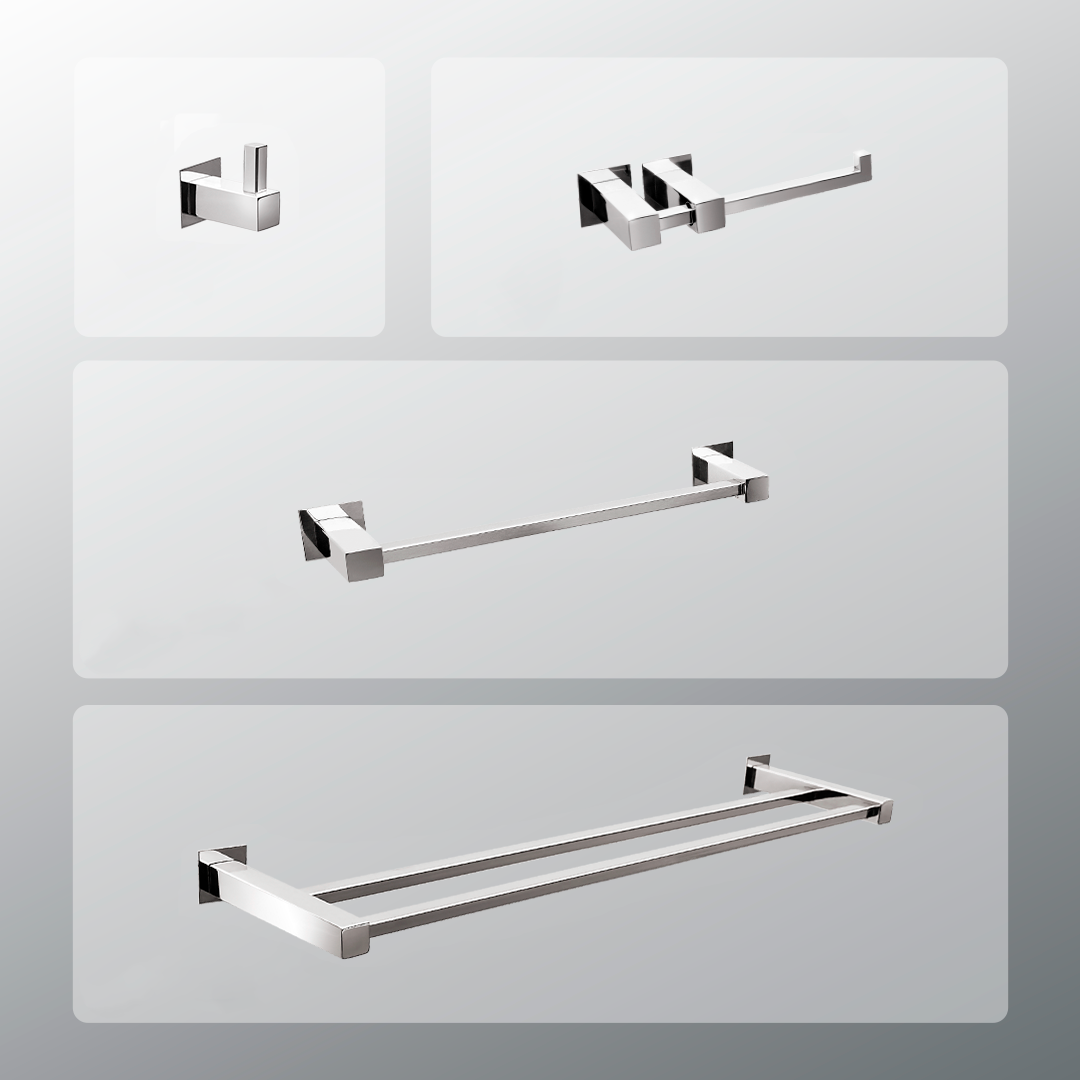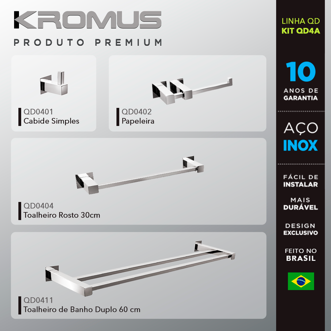 Descrição do produto: Kit Acessórios para Banheiros 4 peças inox – Kromus KITQD4A