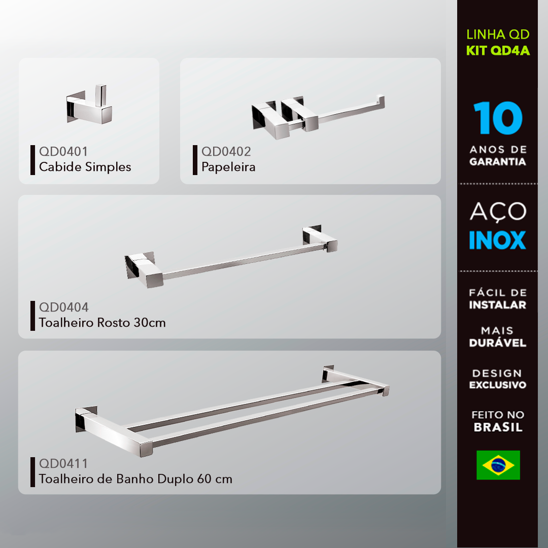 Kit Acessórios Para Banheiros 4 Peças Inox – Kromus Kitqd4a