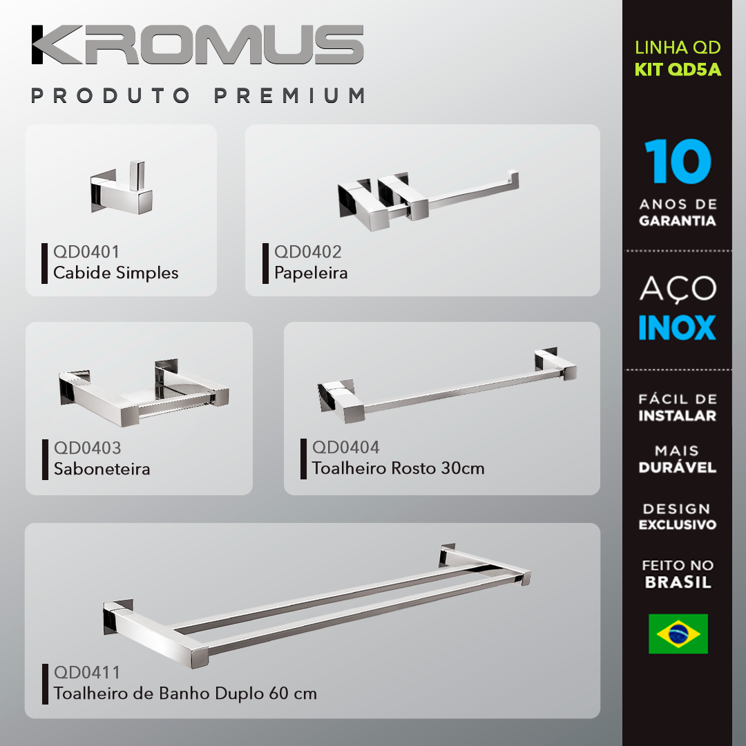Kit Acessórios Para Banheiros 5 Peças Inox – Kromus Kitqd5a