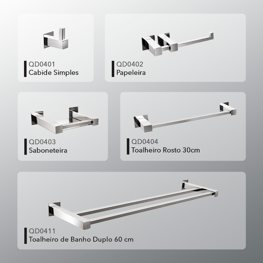 Descrição do produto: Kit Acessórios para Banheiros 5 peças inox – Kromus KITQD5A