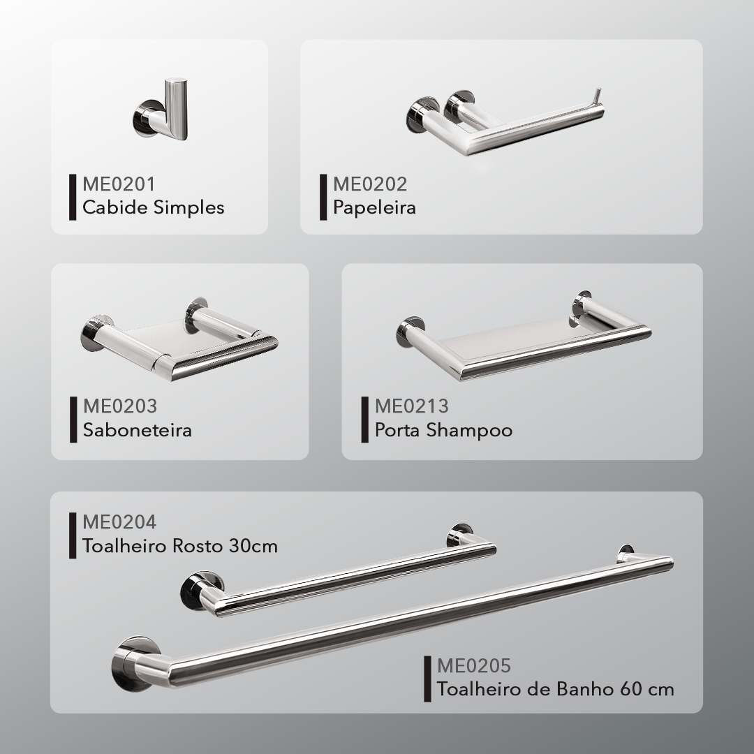 Conheça nossa linha completa, são mais de 20 produtos por linha, para que seu banheiro ou lavabo esteja vestido a rigor, um verdadeiro banho de loja, causando impacto e admiração a quem visitá-lo!