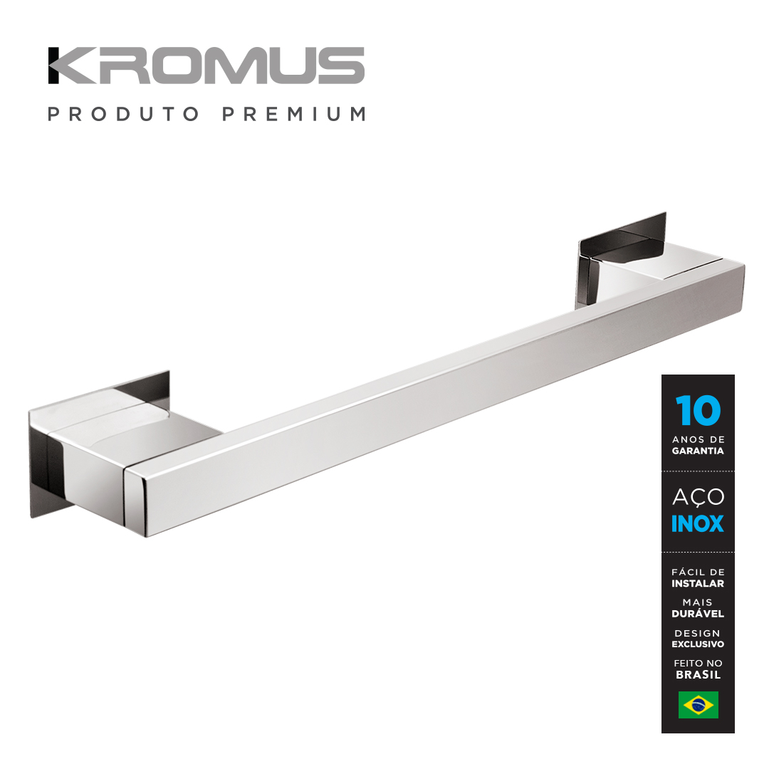 01 Toalheiro 30 cm inox – Kromus RT0304; (A x L x C) 3.5 X 31.5 X 4.5 cm