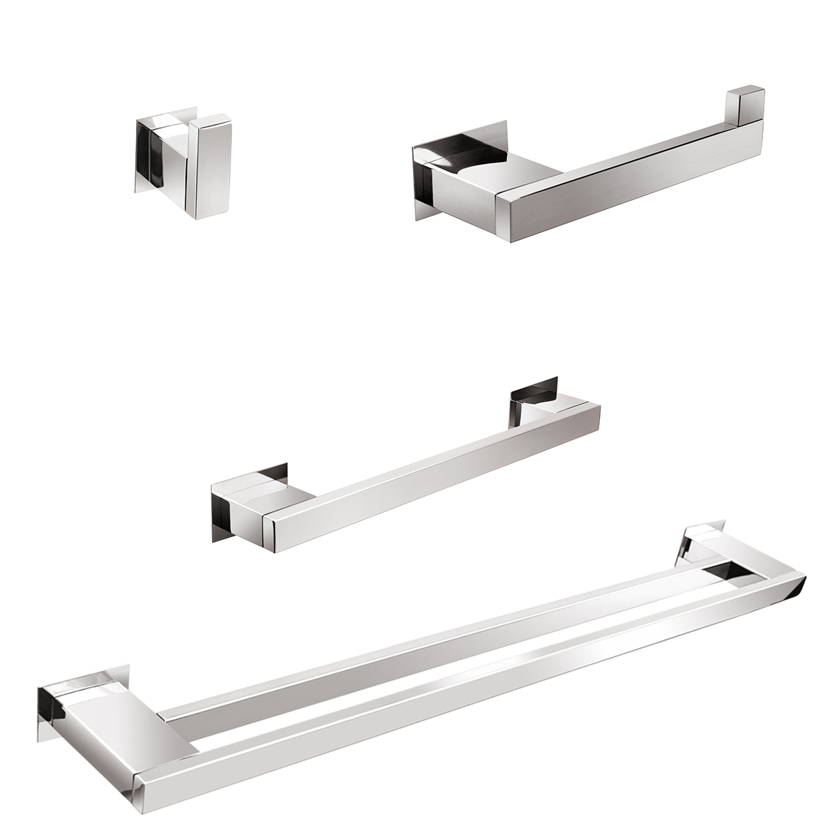Ref.: KITRT4 contém: Cabide Simples, Papeleira, Toalheiro de rosto 30 cm, Toalheiro de banho 60 cm.