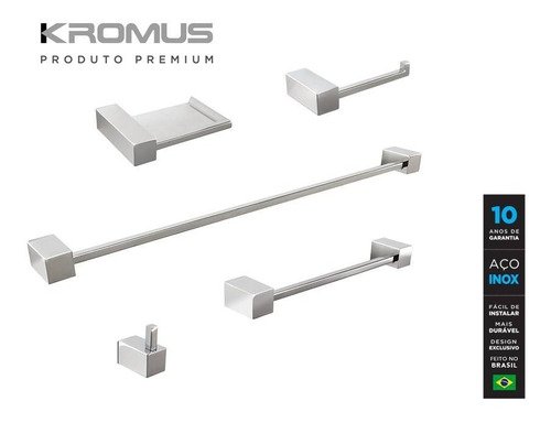 Descrição do produto: Kits Acessórios Para Banheiro Quadratus 6 Pçs Inox – Kromus