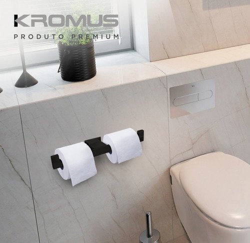 Descrição do produto: Papeleira Dupla Inox Preto Fosco – Kromus RT0313B