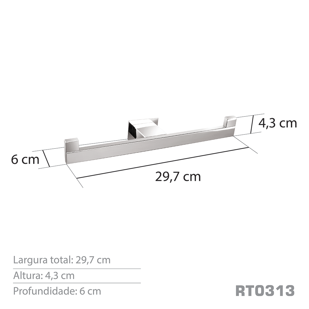Informações gerais do produto: Papeleira dupla, utilizado para colocar até dois papéis higiênicos.