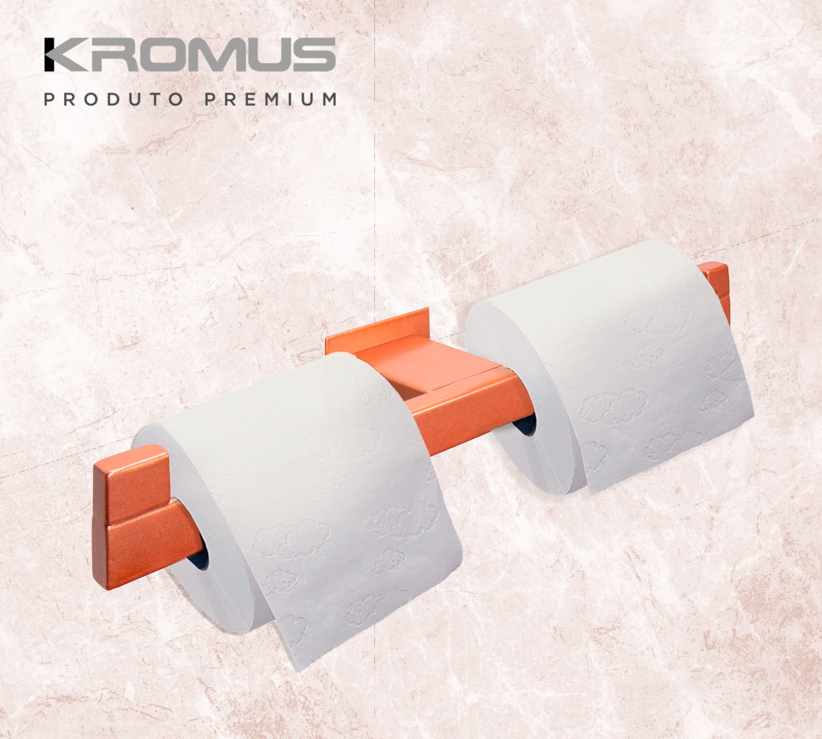 Descrição do produto: Papeleira Dupla Inox ROSE GOLD – Kromus RT0313R