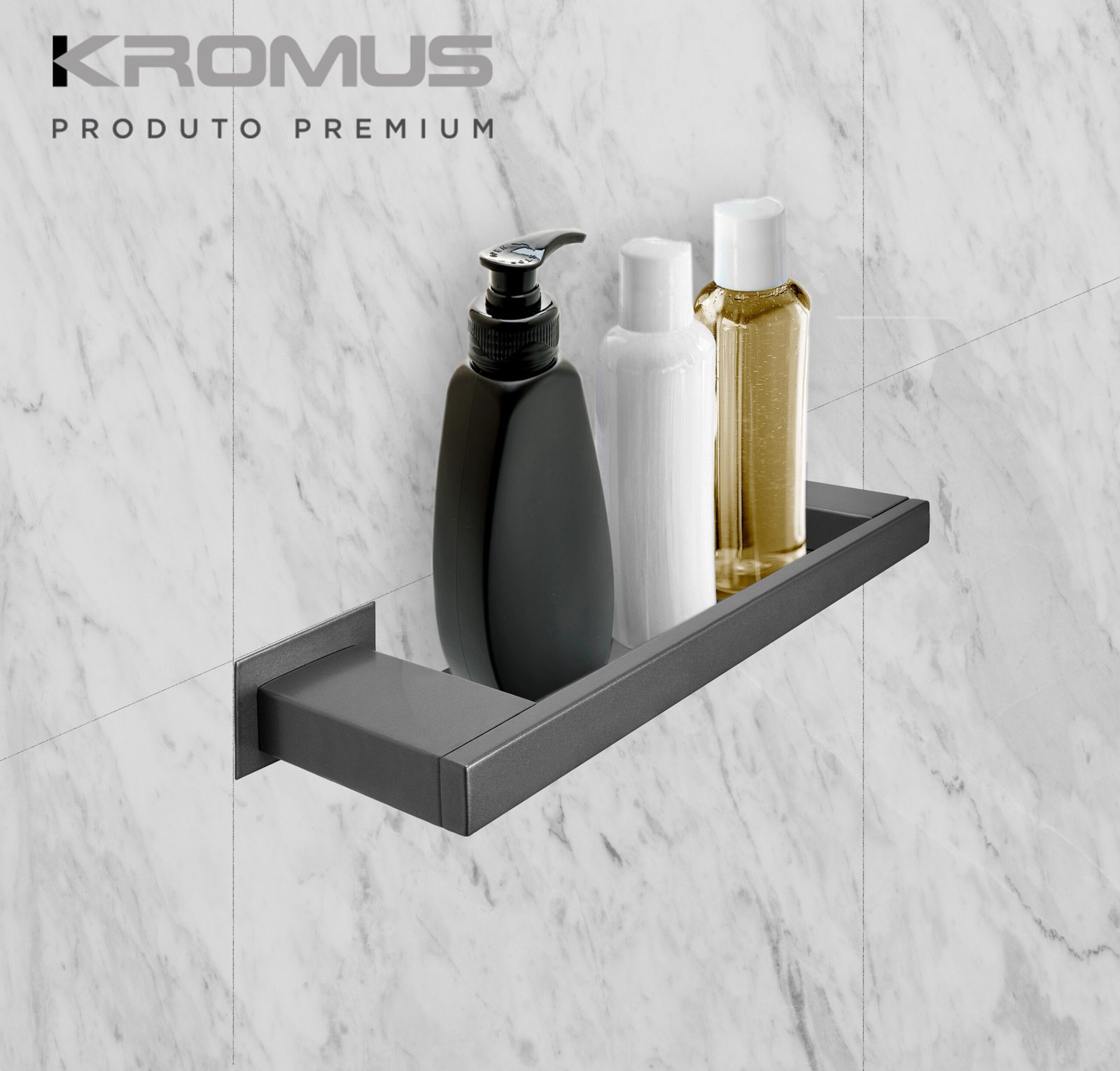Descrição do produto: Porta Shampoo Inox Grafite – Kromus RT0311G
