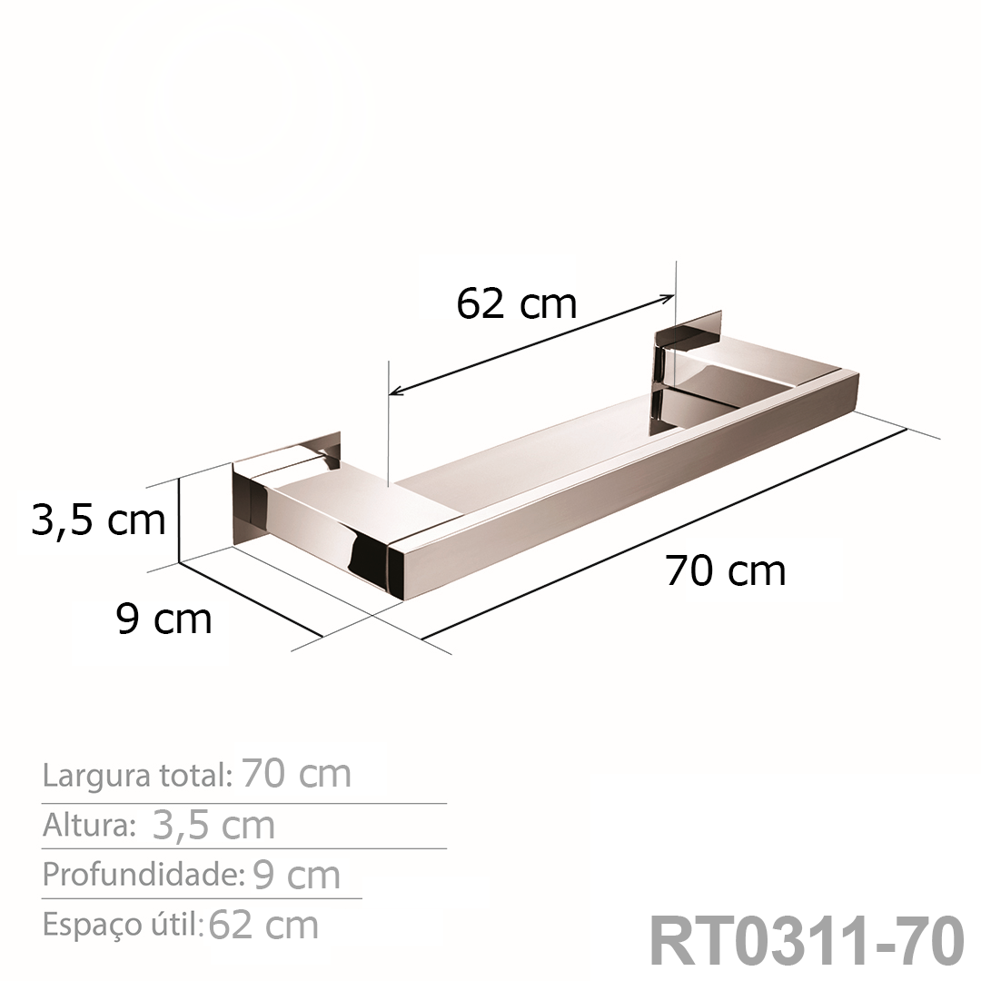 Porta Shampoo / Prateleira 70 cm Inox – Kromus RT0311-70 (largura total = 71,5 cm)