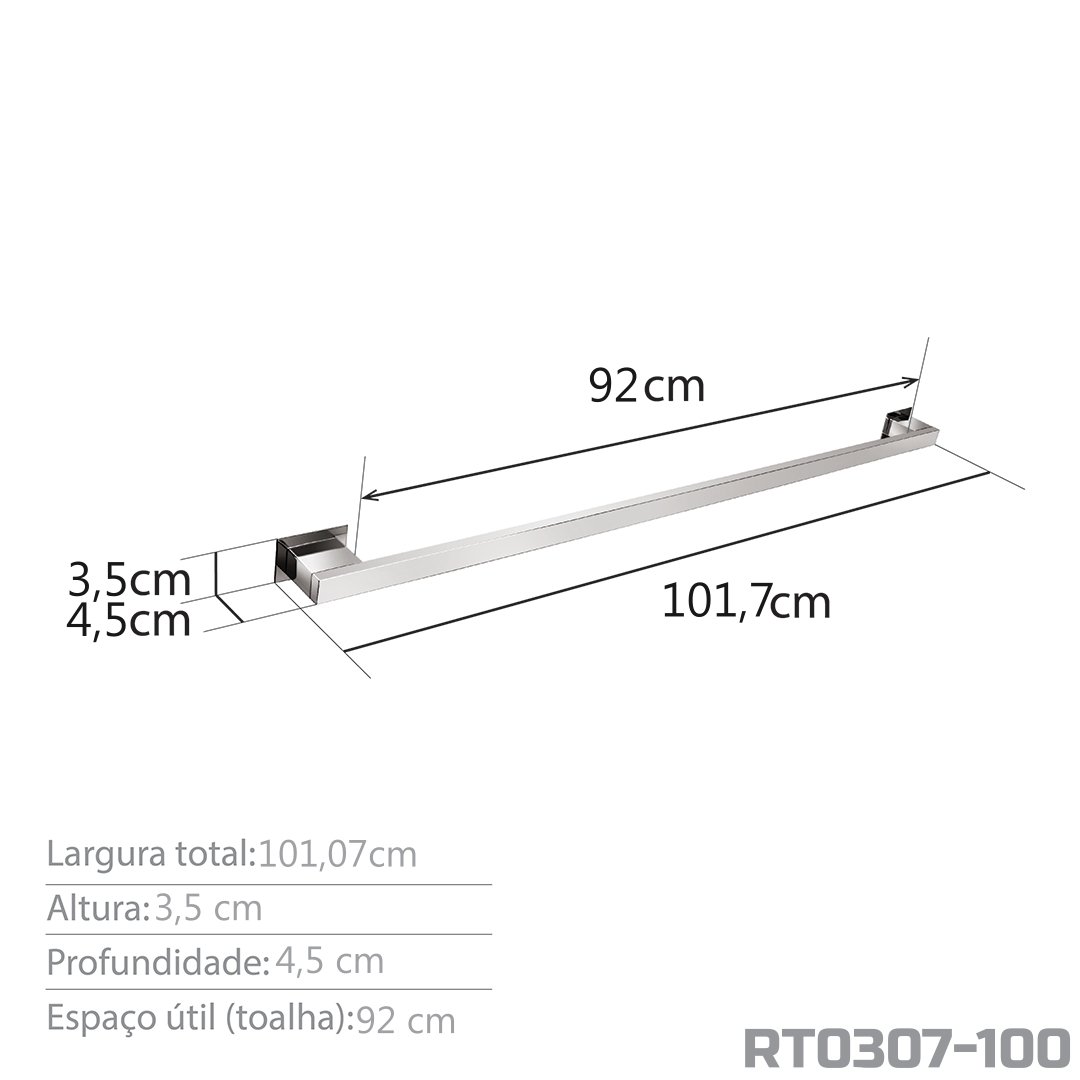 Informações gerais do produto: Toalheiro 100 cm, utilizado para pendurar toalhas de banho de casal e maiores.