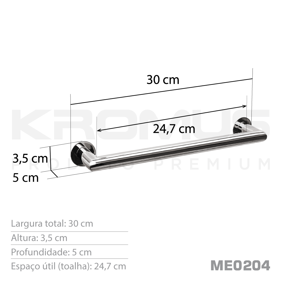 Informações gerais do produto: Toalheiro 30 cm, utilizado para pendurar toalha de rosto.