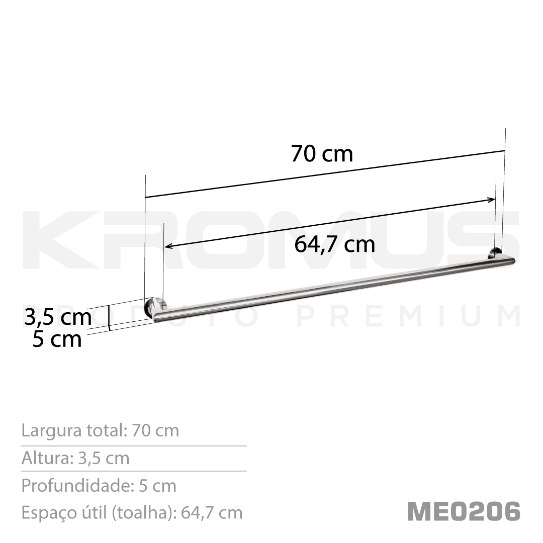 Informações gerais do produto: Toalheiro 70 cm, utilizado para pendurar toalhas de banho de casal e maiores.