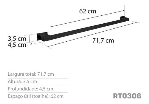Toalheiro 70 Cm Inox Preto Fosco – Kromus Rt0306b