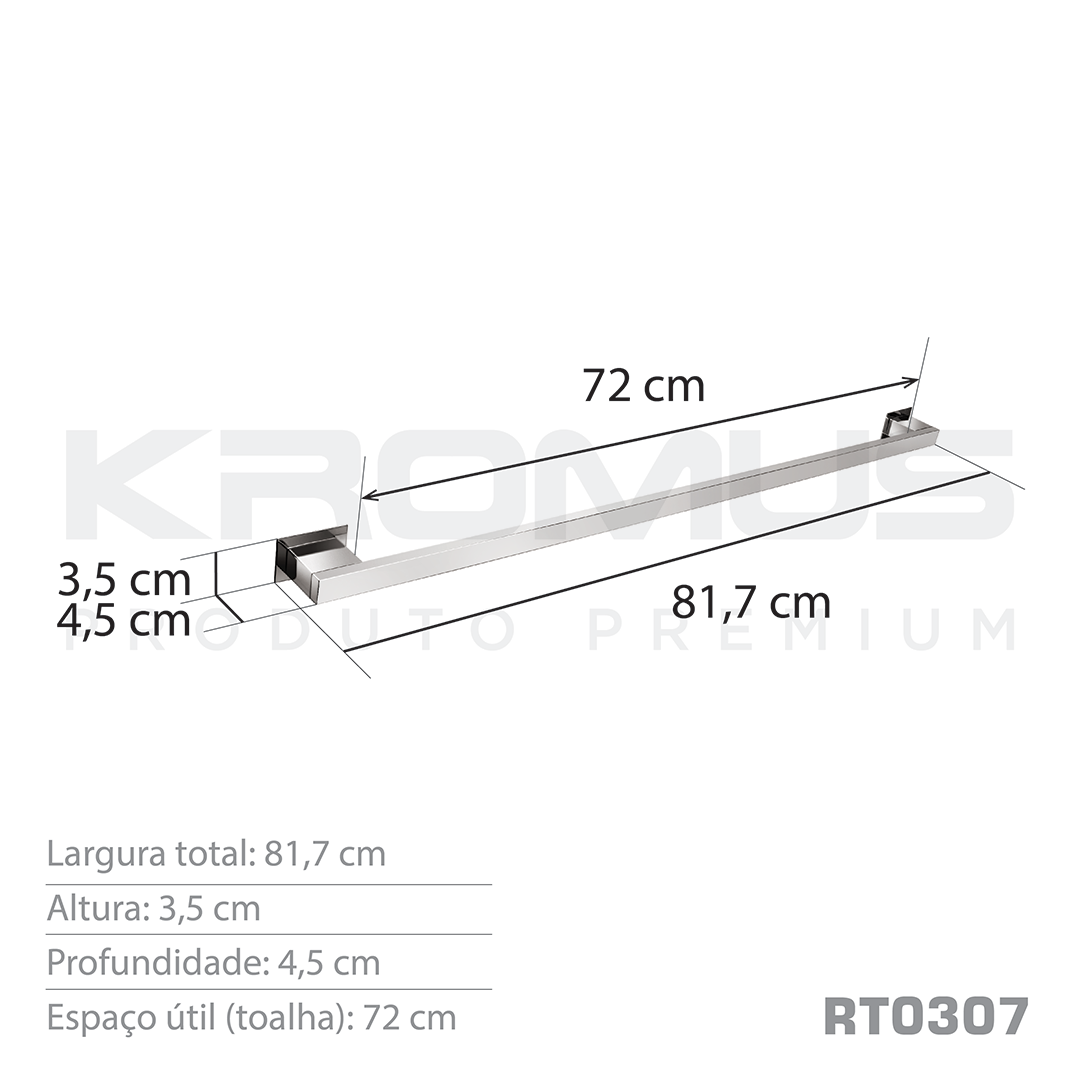 Informações gerais do produto: Toalheiro 80 cm, utilizado para pendurar toalhas de banho de casal e maiores.