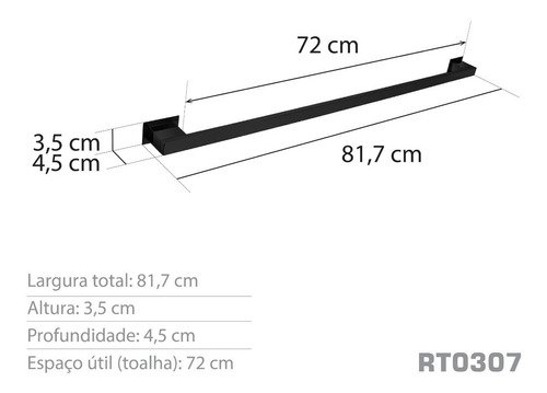 Informações gerais do produto: Toalheiro 80 cm, utilizado para pendurar toalhas de banho de casal e maiores.