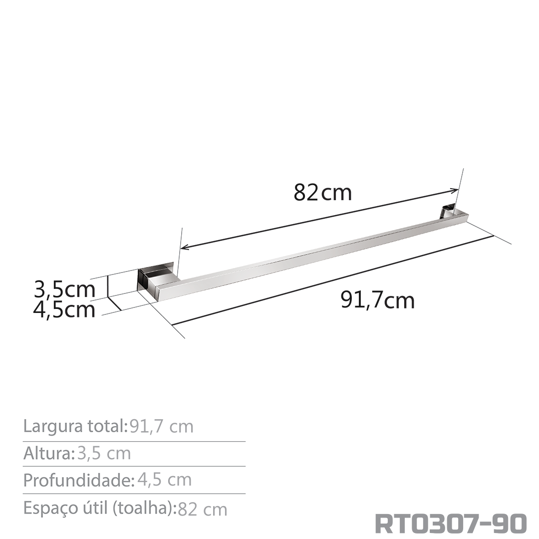 Informações gerais do produto: Toalheiro 90 cm, utilizado para pendurar toalhas de banho de casal e maiores.