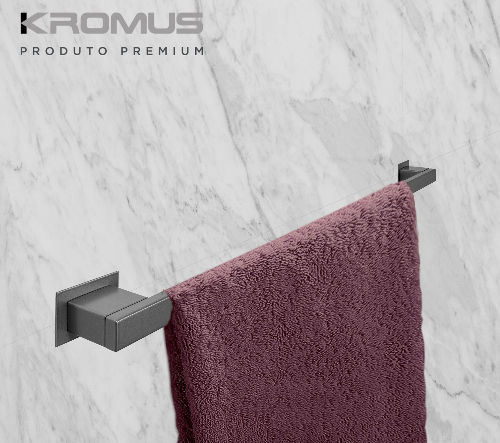 Descrição do produto: Toalheiro 90 cm Inox Grafite – Kromus RT0307-90G