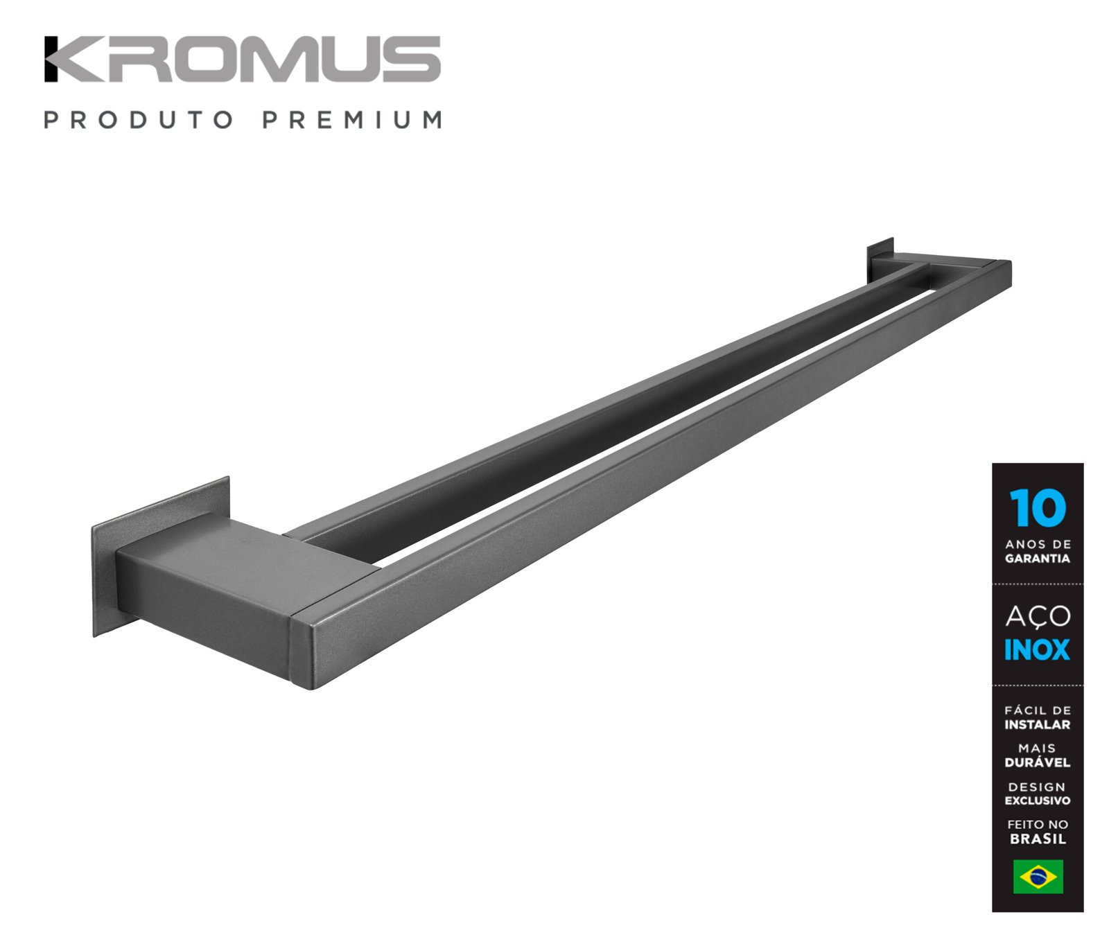 Descrição do produto: Toalheiro Duplo 100 Cm Inox Grafite – Kromus RT0310-100G