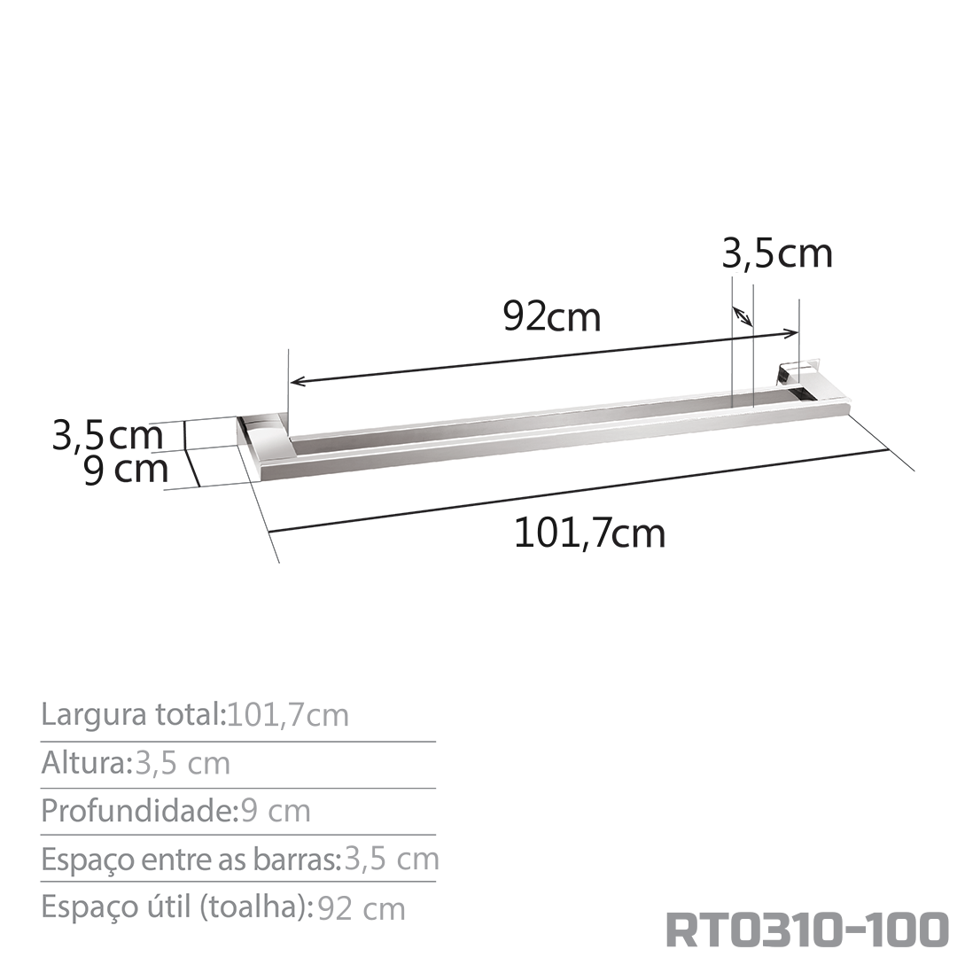 Informações gerais do produto: Toalheiro Duplo 100 cm, utilizado para pendurar toalhas maiores e de casal.
