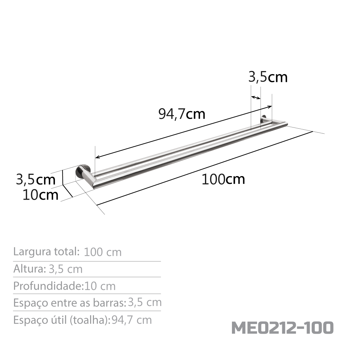 Informações gerais do produto: Toalheiro Duplo 100 cm, utilizado para pendurar toalhas maiores e de casal.