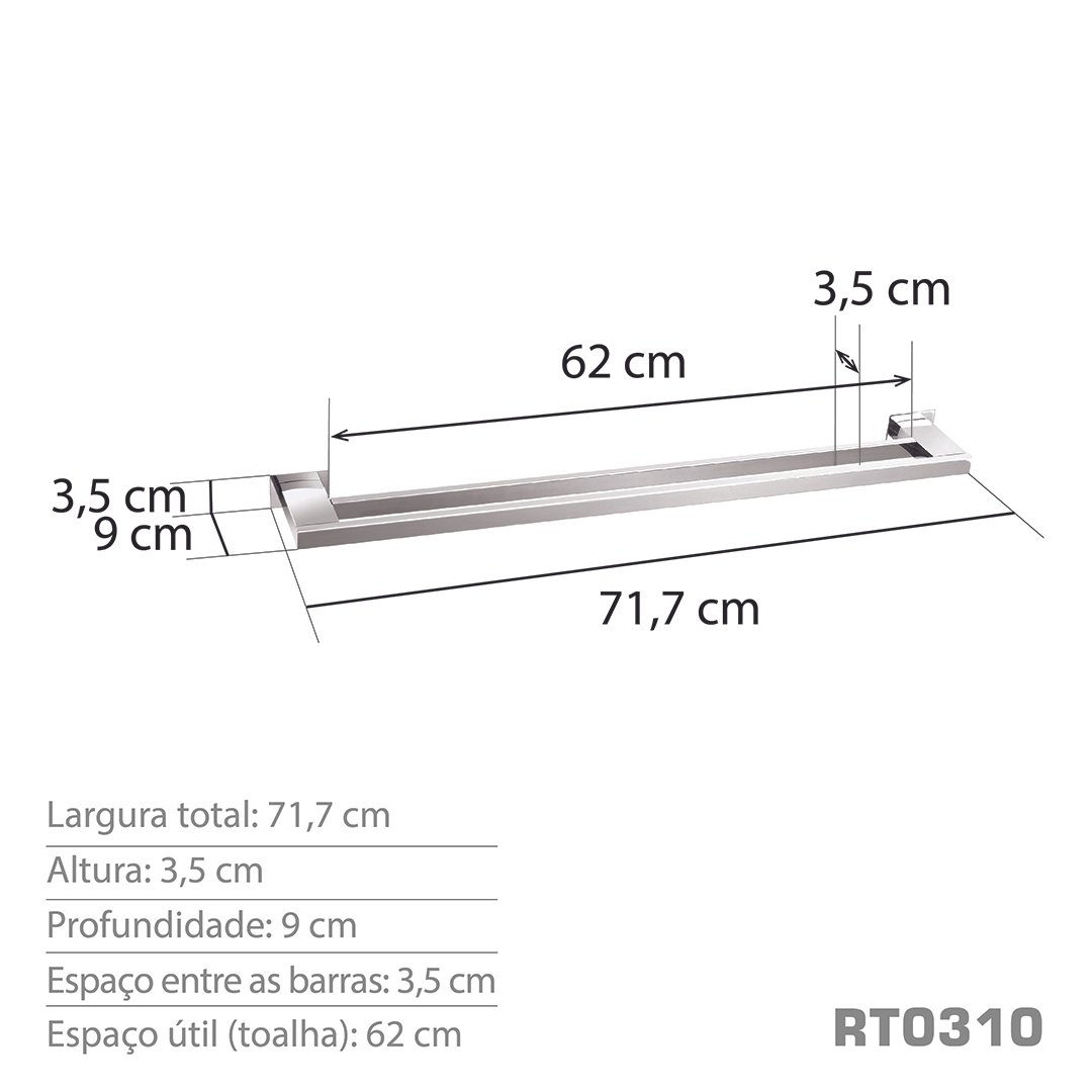 Informações gerais do produto: Toalheiro Duplo 70 cm, utilizado para pendurar toalhas maiores e de casal.