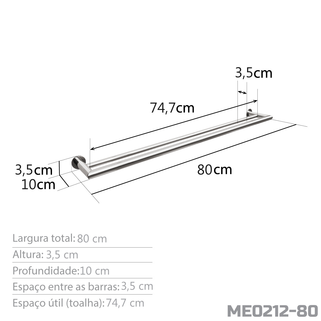 Informações gerais do produto: Toalheiro Duplo 80 cm, utilizado para pendurar toalhas maiores e de casal.