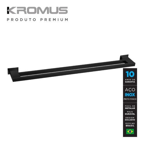 Toalheiro Duplo 90 Cm Inox Preto Fosco – Kromus Rt0310-90B