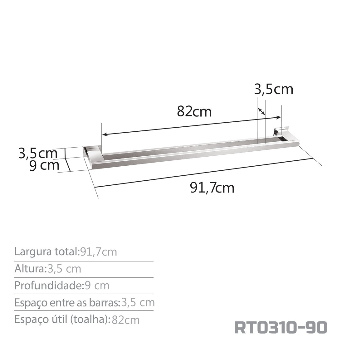 Informações gerais do produto: Toalheiro Duplo 90 cm, utilizado para pendurar toalhas maiores e de casal.