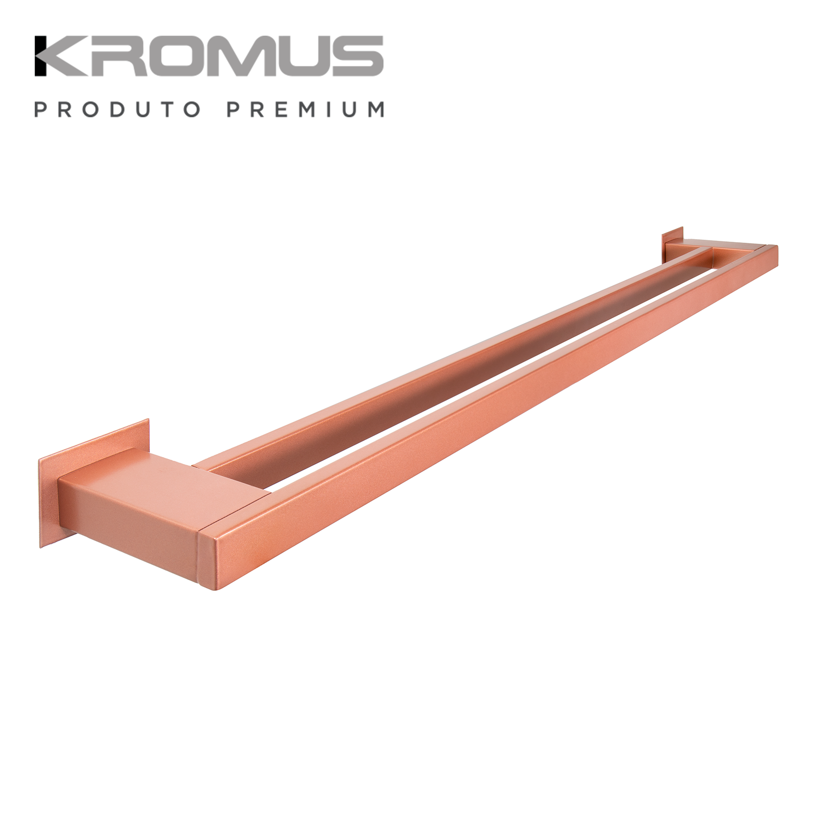 Descrição do produto: Toalheiro Duplo 90 Cm Inox ROSE GOLD – Kromus RT0310-90R