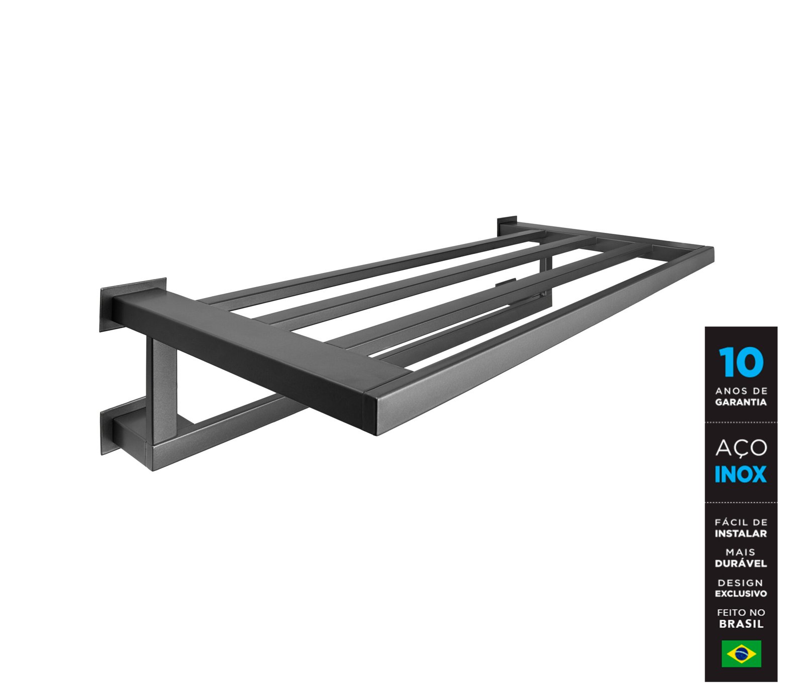 Produto prático, resistente, funcional, com design moderno, atual e inspirado nas inovações dos mercados europeus, marcados pelo bom gosto e seguindo as tendências contemporâneas dos mais renomados designers de todo o mundo, compartilham e protagonizam ambientes que se misturam entre o rústico e o moderno, proporcionando experiências sofisticadas e aconchegantes ao seu dia a dia. Pode ser instalado em banheiros, lavatórios ou lavabos oferecendo grande praticidade e beleza ao ambiente, agradando a todos os gostos. Produzido em aço inoxidável, acabamento em pintura eletrostática epóxi na cor grafite, seguindo uma tendência inspiradora de tons neutros e terrosos, garantindo e reforçando sua alta qualidade, resistência, robustez e facilidade na limpeza. Fabricado no Brasil, com matéria prima nobre e seu design diferenciado, versátil e elegante, garante uma excelente opção de compra com a certeza de uma ótima composição com qualquer estilo de decoração.