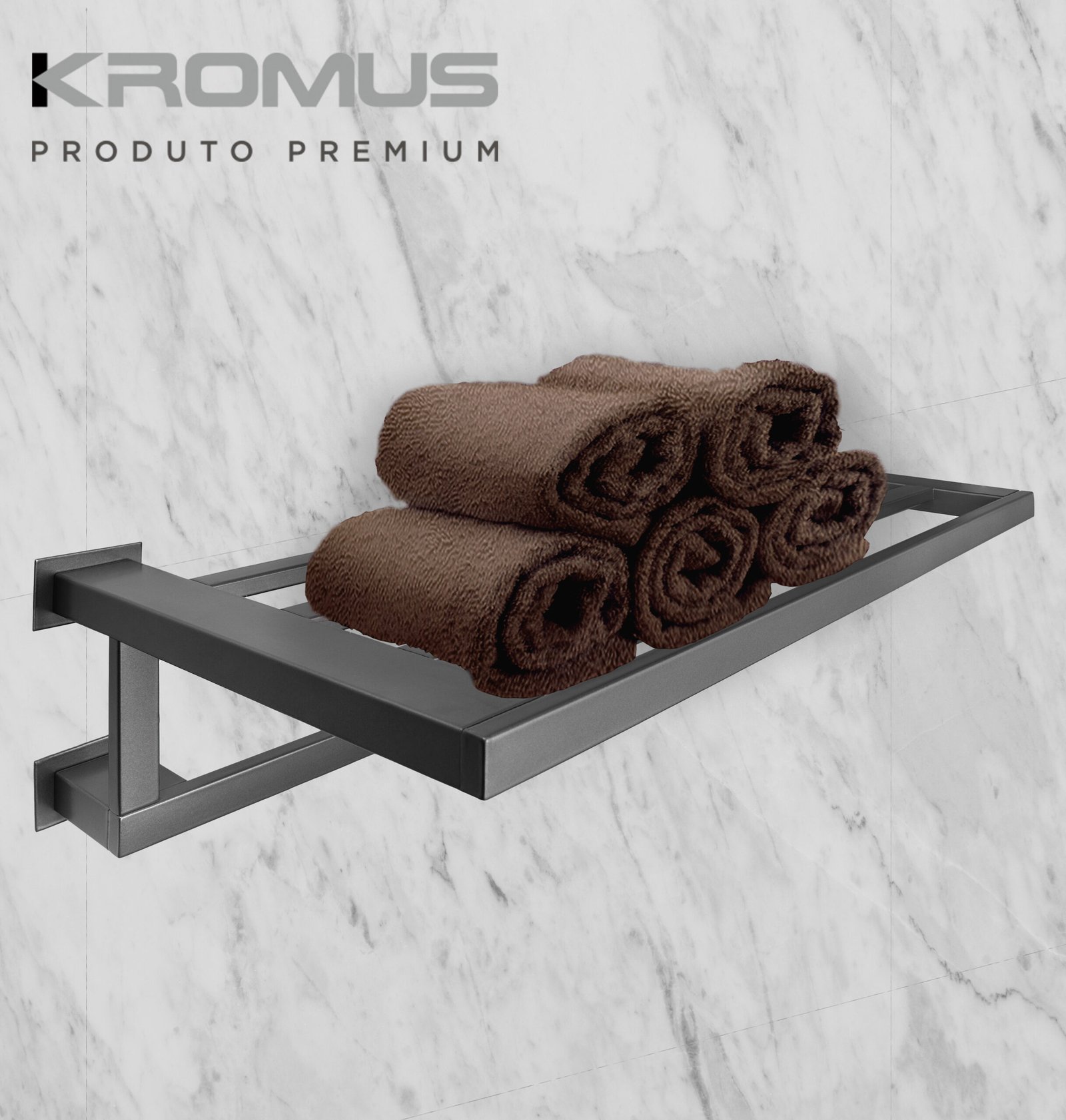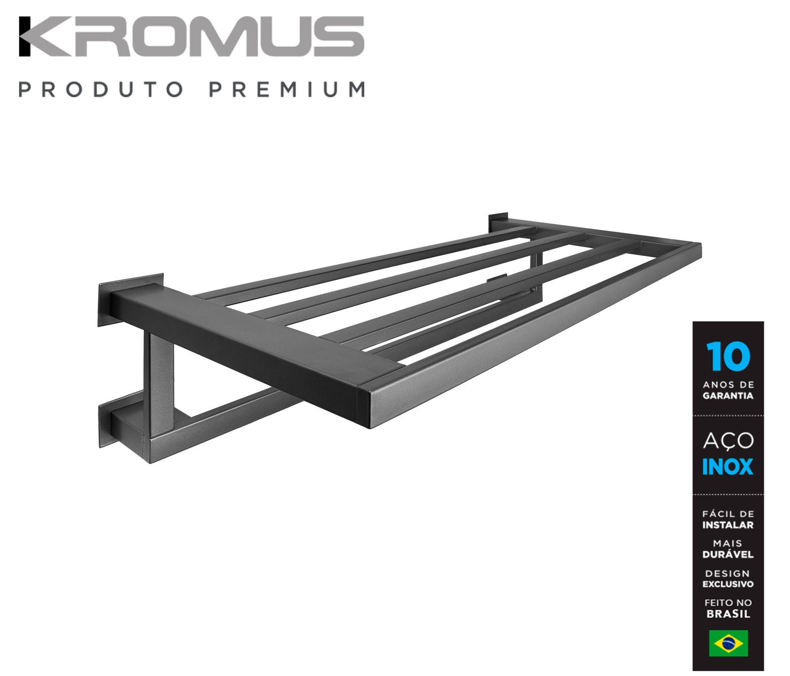 Descrição do produto: Toalheiro Rack 60 cm Inox Grafite – Kromus RT0308G