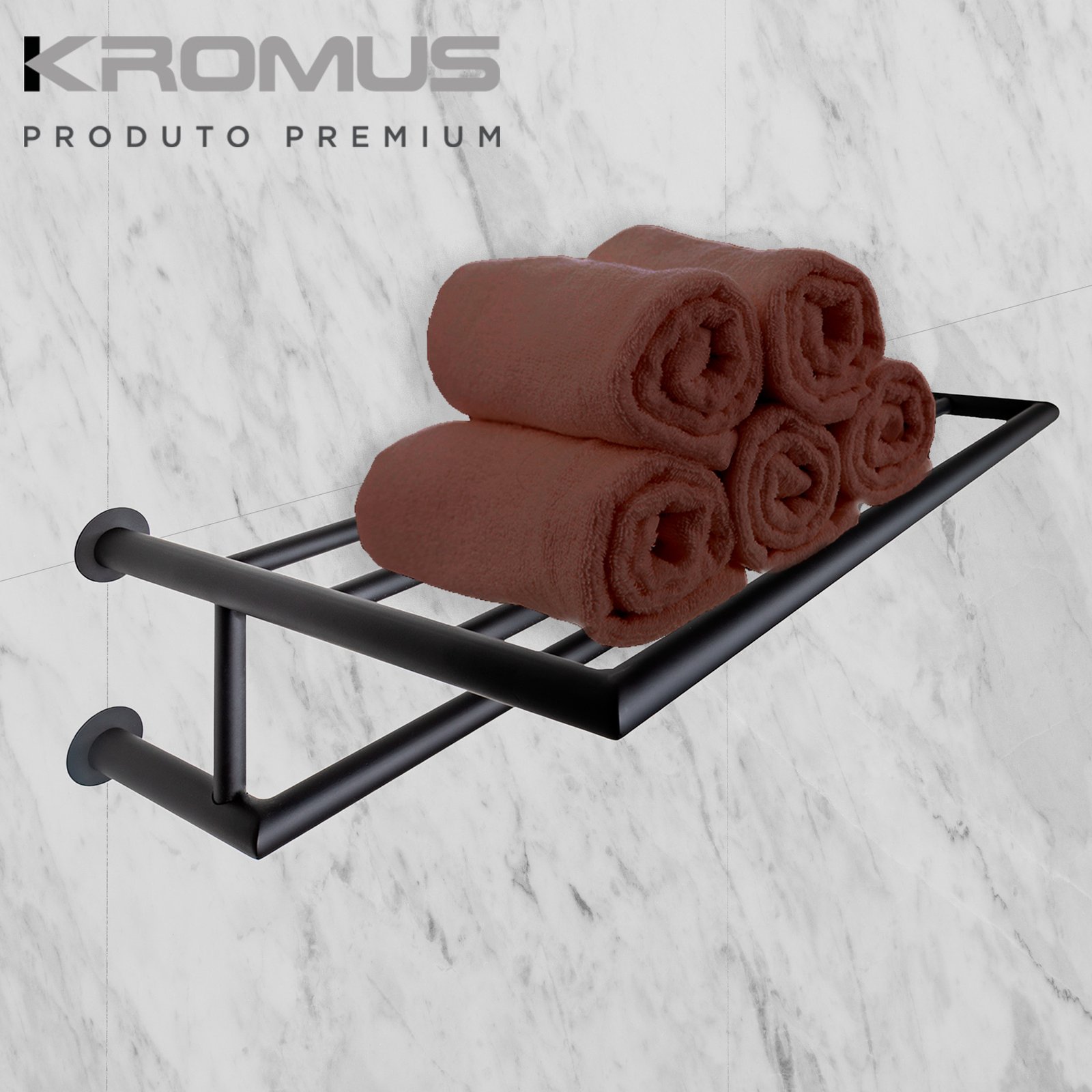 Descrição do produto: Toalheiro Rack 60 cm Inox Preto Fosco – Kromus ME0210B